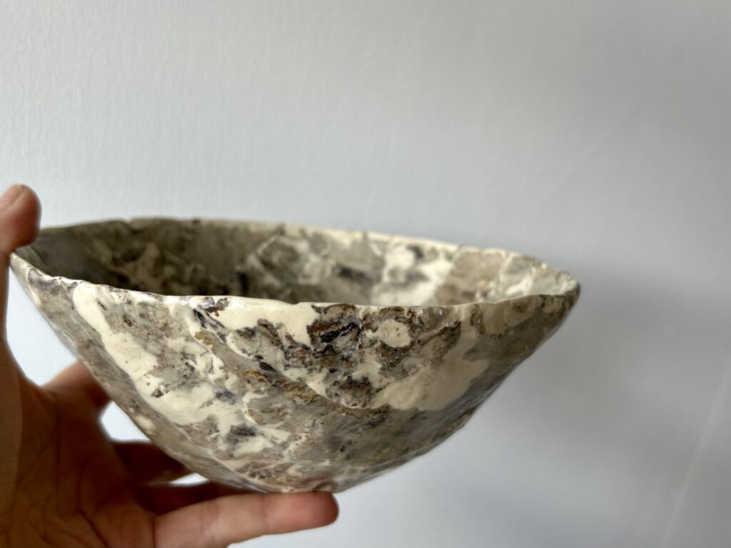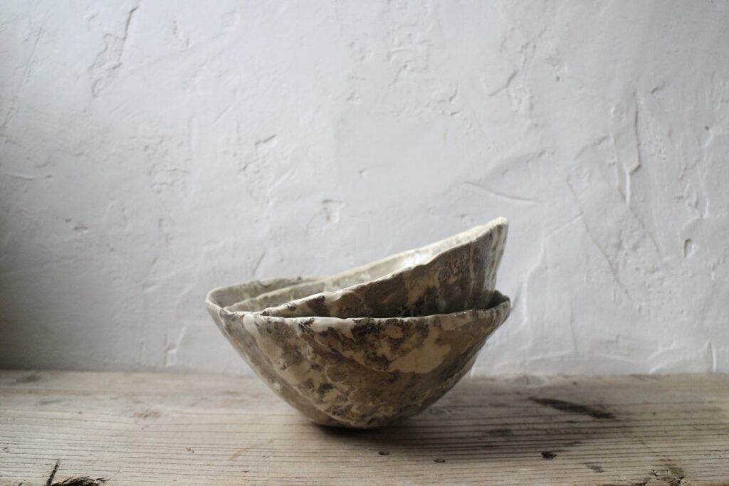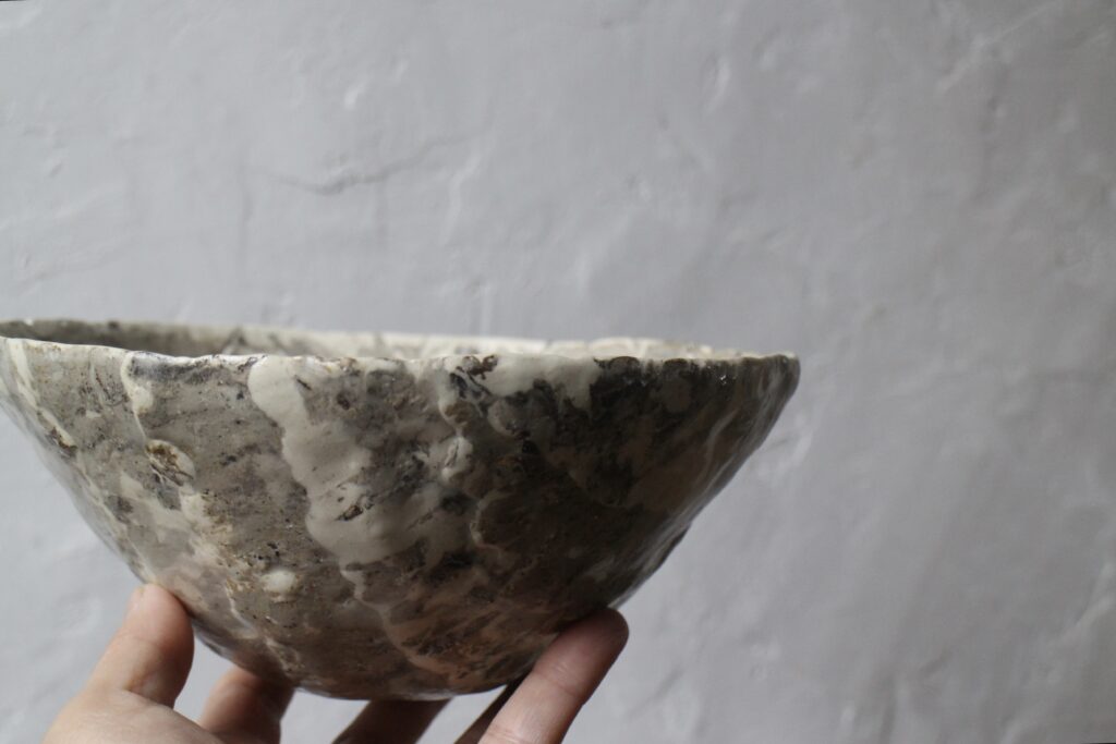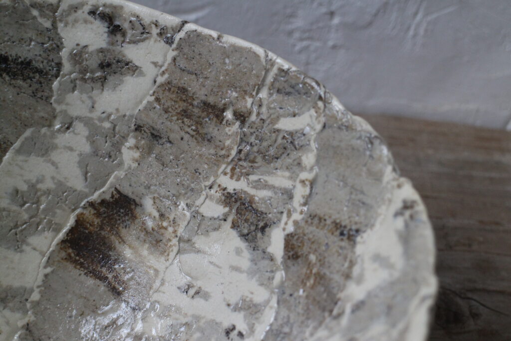 土の合わせの盛り上がり部分や地層の断片の様なうつわの表面は